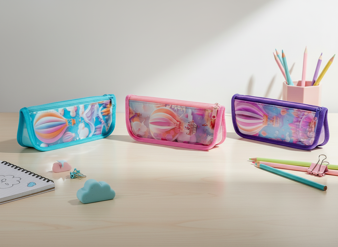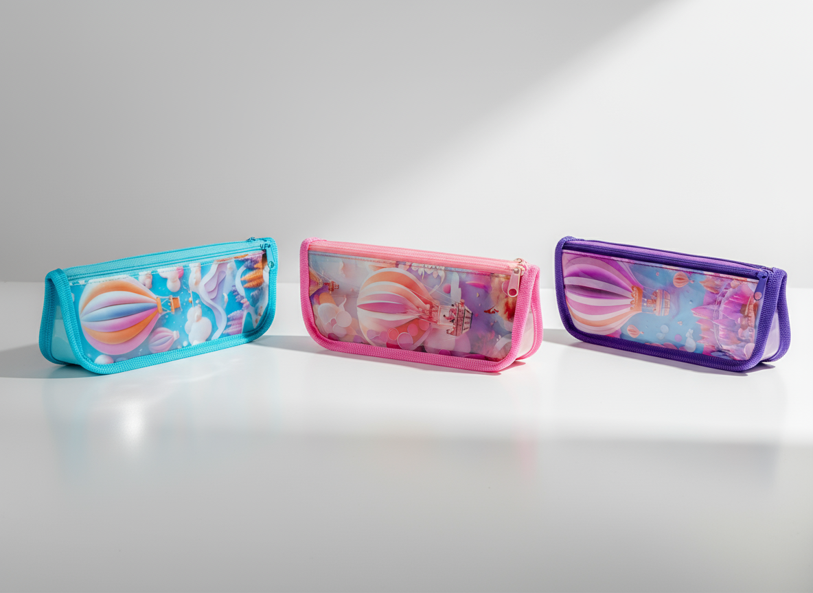 Adorable cartoon pencil case for girls! Durable zipper, colorful print, spacious compartments – perfect for school essentials like pens, erasers, and rulers.