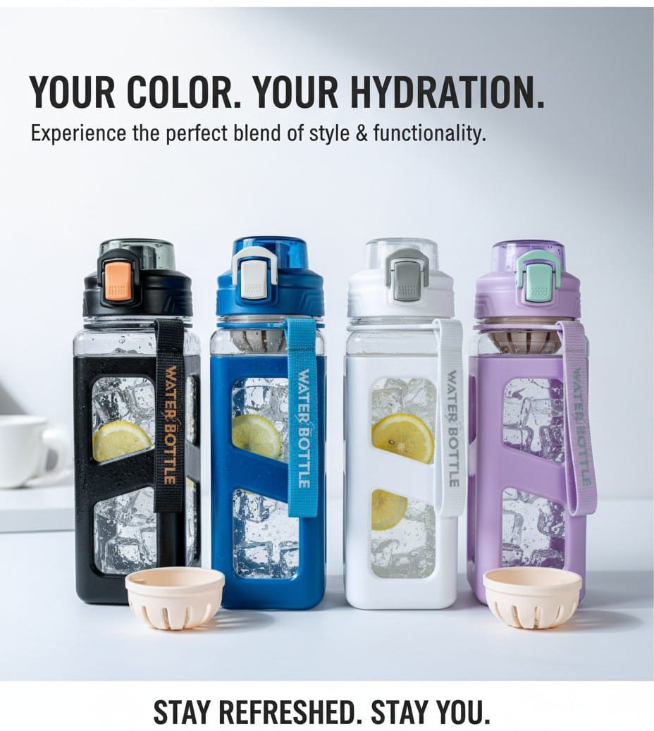 Crafted from BPA-free, food-grade plastic, this bottle features a leakproof flip-top cap, a secure locking mechanism, and a durable carry strap — making it a great companion for gym sessions, travel, work, or home use.